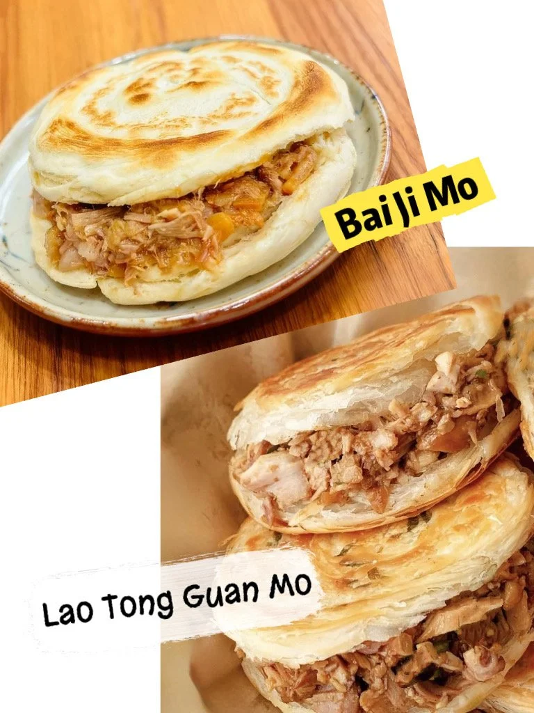 The heart of our Rou Jia Mo is the succulent, slow-braised meat. We achieve the perfect balance of richness and texture by using a traditional blend of lean pork shoulder and tender pork belly. This meat is simmered for hours in a rich, complex broth infused with over 20 aromatic spices, resulting in an unbelievably tender and flavorful filling. Once finished, the meat is finely chopped, mixed with its savory broth, and generously stuffed into your choice of bun. You can choose the Bai Ji Mo (Classic Xi'an style) — a thick, unleavened bun that's soft and chewy inside, perfect for soaking up the juices. Or, try the Lao Tong Guan Mo (Extra-Crispy style), which is made using a unique lamination process and baked to a shatteringly crisp, flaky, and buttery-rich texture for those who crave maximum crunch.
